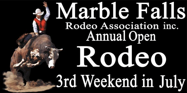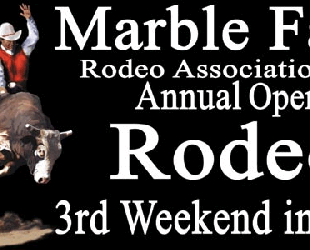The Marble Falls Rodeo Association's annual Open Rodeo takes place at the Charley Taylor rodeo Arena on US 281 about five miles south of Lake Marble Falls between 281 and Texas 71. All things cowboy (and girl) including steer catching and mutton bustin'! Dance afterwards, wear boots!